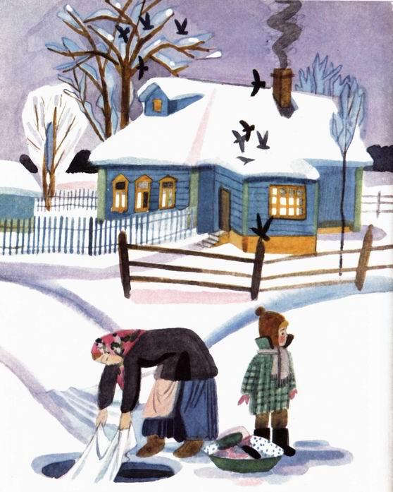 Всё суровей, глубже становилась зима. Снега всё падали и падали на землю. Замело, занесло снегами леса и деревни.