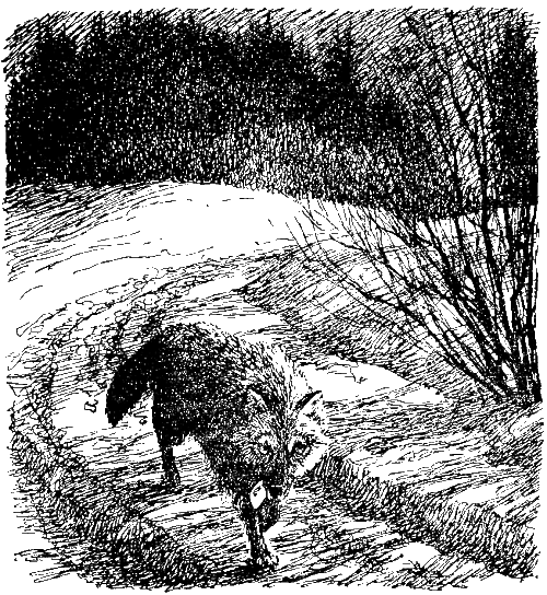 Волк бежит и, глядя на дорогу,