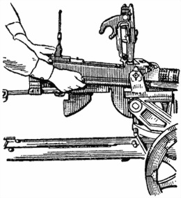 ослабить болты цапф пулемета на станке, отвернув их на один оборот;