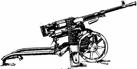 3. Колесный или треножный станок позволяет вести стрельбу из пулемета по наземным и воздушным целям. Угол горизонтального обстрела по наземным целям с применением ограничителей около 90°, по воздушным целям 360°. Высота линии огня: при стрельбе лежа с колесного станка 403 мм, с треножного станка 350 мм; при стрельбе с колена и сидя с треножного станка 1055 мм.