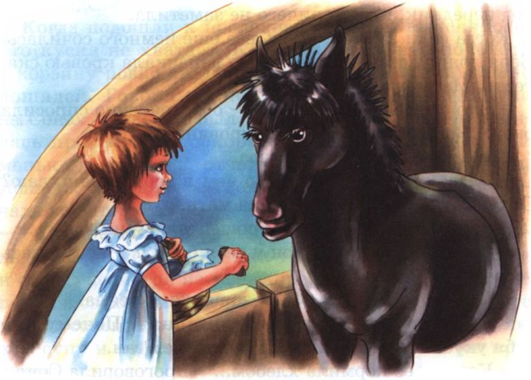 Назавтра она снова понесла в конюшню за матерью корзинку с хлебом. Подавая ей по кусочку, девочка спрятала один ломоть в карман и съела, пока маменька не видела.