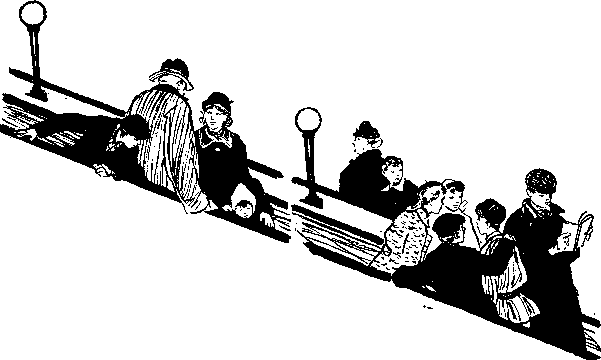 Степа в смятении присел: заметили-таки! Но нет, это его окликнул приятель Олег Пастухов, спускавшийся на соседнем эскалаторе. Он был в новеньком костюмчике, причесанный, тонкий с горбинкой нос задран вверх. Важная мама, нагруженная свертками, что-то убежденно доказывала Олегу. Степа показал на ехавших впереди Федю с товарищами. Нос у Олега сразу клюнул вниз. Он догадался в чем дело и ответил, также жестами, что на перроне «потеряется».