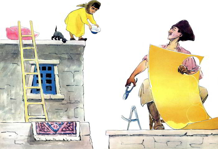 Смеясь, берёт соседка.