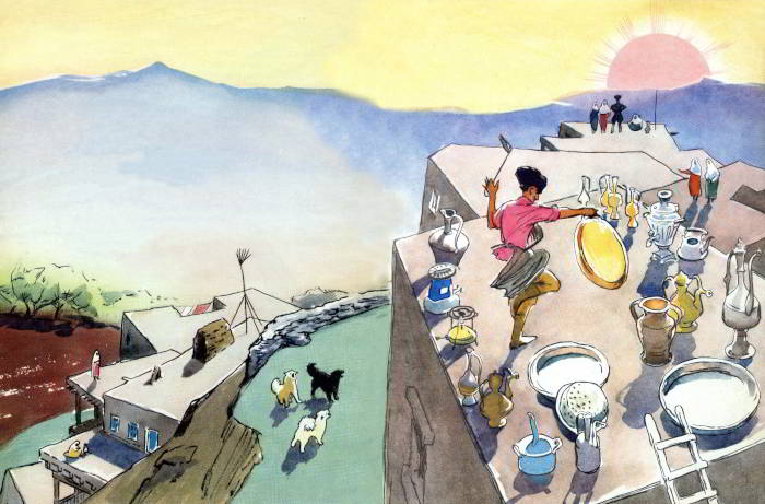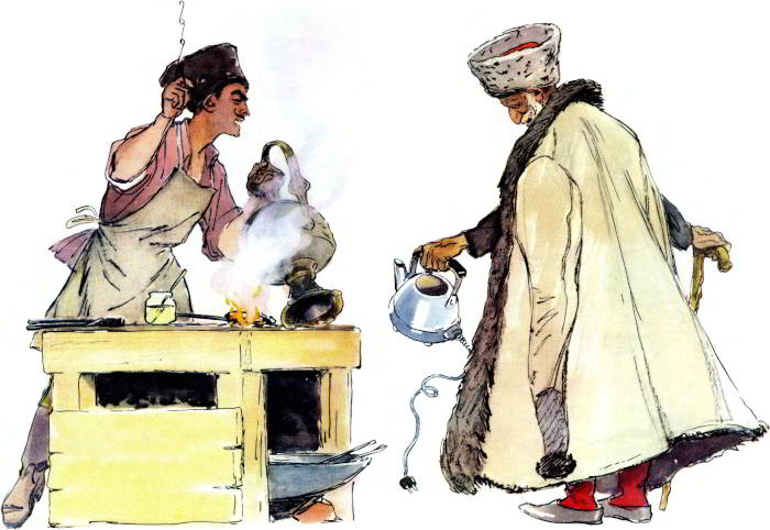 К нему несут и медный таз,
