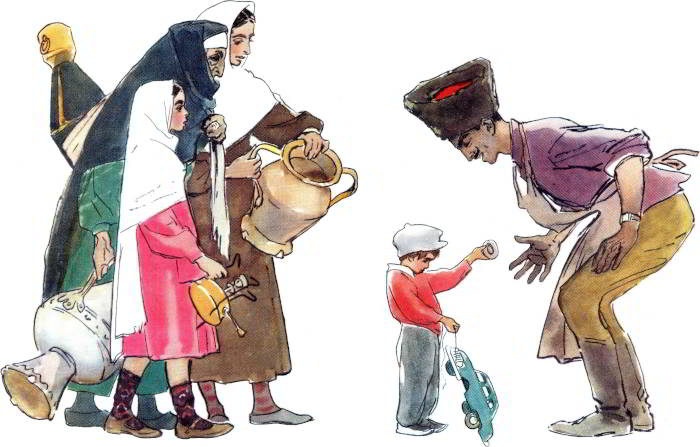 Берёт из рук односельчан