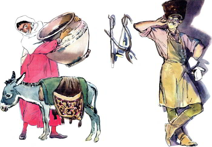 Стоит лудильщик у стены