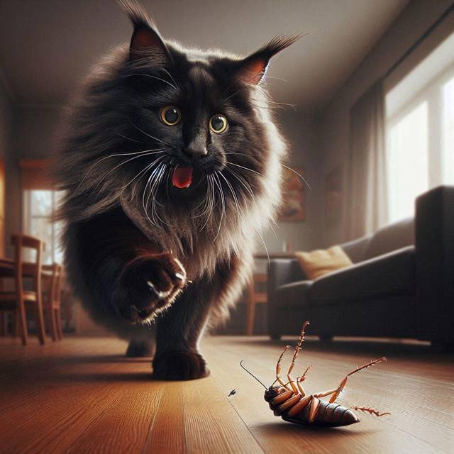 Один пакет с дохлятиной открылся, на пол вывалилось пару жуков. Маркиз оживился, понюхал и принялся гонять одного из них по кухне.