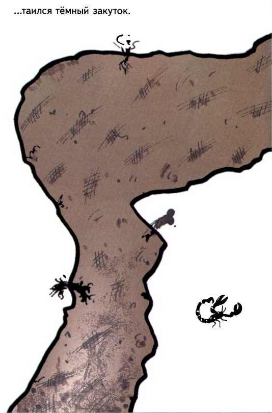 В тёмном закутке было совсем-совсем темно. Раз-другой дядюшка Кураж принимался учить сурикатиков, как открывать дверь детской. А дверью в детскую служил холмик песка, который отделял закуток от главного тоннеля. Но и в главном тоннеле, и во всей длинной норе, в каждом её ответвлении и тупичке, тоже царила темнота, поэтому малыши до сих пор не знали, как выглядит их родной дядя.