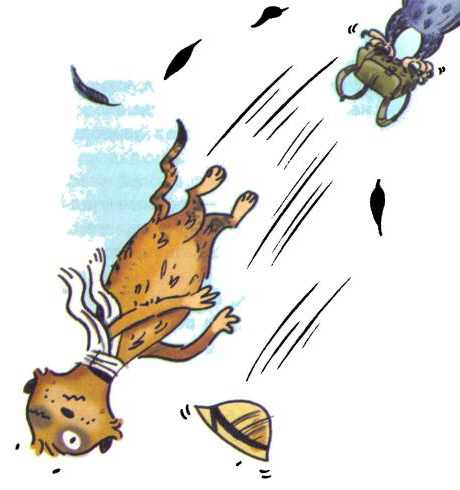 Что-то глухо шмякнулось, а через секунду Яя и Хвостик с удивлением увидели, как Свирепый Сыч с разгневанным клёкотом пытается оторваться от земли, сверкая жёлтыми злющими глазищами.