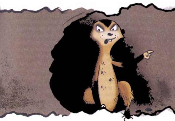 Сурикатики двинулись вперёд, втягивая носами новые запахи. А темнота всё редела да редела и превратилась в полумрак, но малыши и от полумрака мигали ведь они никогда не видывали света. Тут, на очередном повороте, из полутьмы к ним вышел Ловкач король Остроглазых собственной персоной. Вернее, сначала из бокового тоннеля выкатился его запах, потом показалась острая мордочка, а уж потом проворное тело.