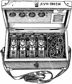 Рис. 34. Общий вид прибора освещения Луч-ПМ2М с открытой крышкой укладочного ящика