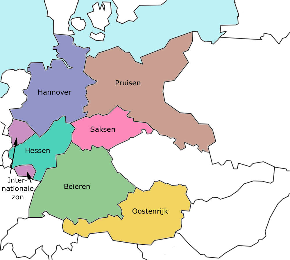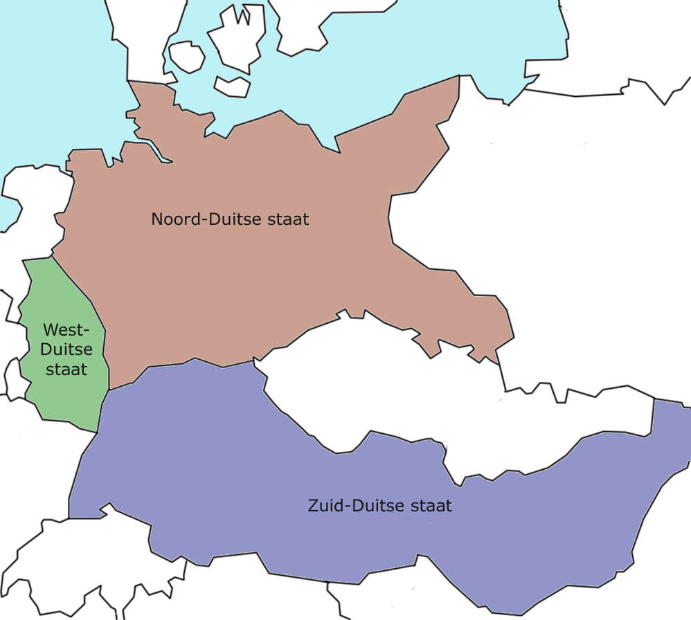 Дью выложил альтернативный план, предлагая располосовать Германию на пять государств (Пруссия, Ганновер, Гессен, Бавария и Саксония) и две международные зоны (Рур и Саар).