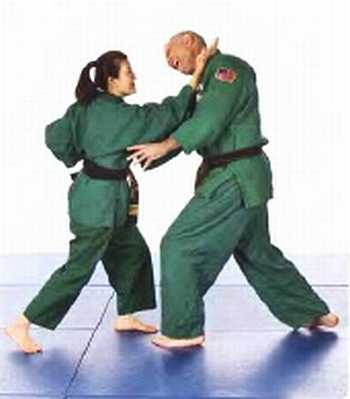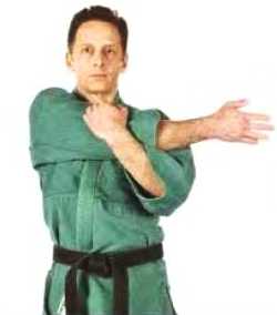 Напряженная боковая сторона ладони может нанести достаточно быстрый и сильный удар. Поскольку обычно в этот удар не вкладывается большая сила, чаще всего он используется для поражения маленьких целей. На рисунке показан прием удара, нанесенного с целью сломать ключицу оппонента.