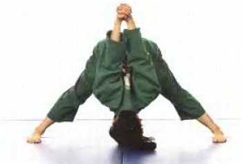 Наклоны из положения с широко расставленными ногами + растяжка мышц плеч: Растяжка подколенных сухожилий, приводящих мышц и мышц плеч.