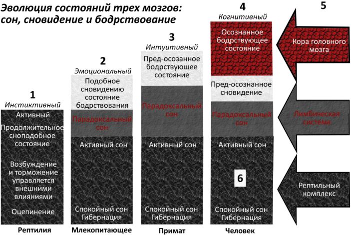 3. Три различимых состояния мозга бодрствование, сон и сновидение у высших приматов.