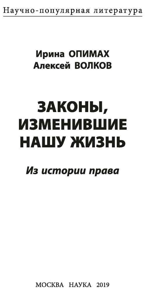 Законы, изменившие нашу жизнь Ирина Опимах. Алексей Волков
