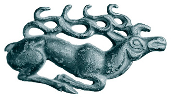 Бегущий олень. Бронза, скифский звериный стиль, железный век (найдено в районе Минусинска).
