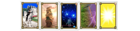 Чтобы лучше понять, о чём идёт речь, давайте начнем с простого линейного расклада из пяти карт (рис. 1) отвечающего на вопрос «Как пройдёт путешествие и чем оно закончится?». В этом раскладе мы разберём, как будет развиваться ситуация с предстоящей поездкой, какие изменения она принесёт, и в какие временные рамки впишется.