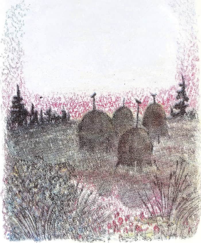 Лена с любопытством стала наблюдать за солнцем, как оно на своём коромысле будет носить воду и поливать землю. Но скоро девочка утомилась, закрыла глаза и уснула.