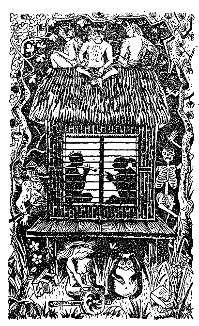 Японский сказочник большой мастер придумывать страшные истории, такие, от которых сам Рудый Панько, пожалуй, не отказался бы! Образы фантастических чудовищ гротескно-причудливы, от них веет ужасом. Эти видения словно возникали в ночном бреду. Именно такими изображал их знаменитый художник Хокусай, он умел придать >им удивительную достоверность.