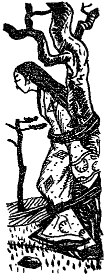 С опаской подошел лесоруб поближе. Еще страшнее ему стало. Не веревкой привязана эта женщина к стволу, а жгутами собственных длинных волос. Глаза у нее закрыты, словно она без памяти.