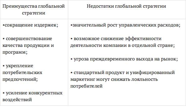 Преимущества и недостатки глобальной стратегии