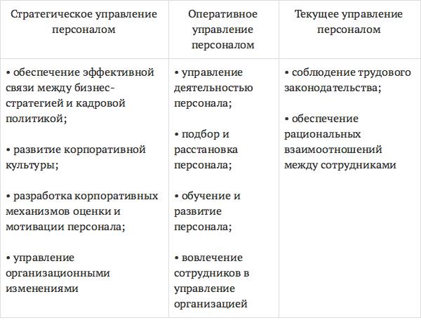 Задачи стратегического, оперативного и текущего управления персоналом
