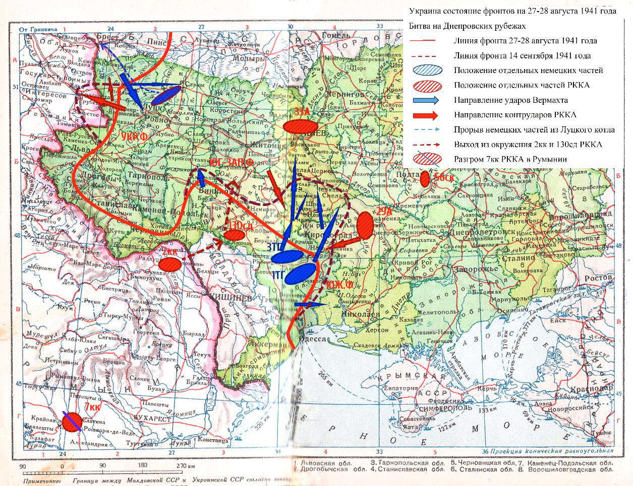 Ватутину пришлось сложнее, че мне у него были под руками только стрелковые части, ни 29, ни 33 армии не были укомплектованы подвижными соединениями от слова вообще. Их не успели перебросить. Но зато в каждой армии было по противотанковой-истребительной бригаде, которая имела не только сорокапятки, но в состав каждой входил дивизион самоходок с 57-мм противотанковыми орудиями ЗИС-2, которые пробивали броню любого немецкого танка или самоходки, даже приземистых «штугов». Эти самоходки были вынужденным эрзац-компромиссом, а что делать? Они были нужны, в условиях наступления танковых групп иметь противотанковый подвижный резерв жизненная необходимость. Плюс сюда перекинули резервы противотанковых мин, которыми просто «засеяли» опасные направления. Саперы обеспечили защиту импровизированных противотанковых узлов обороны. При этом прекрасно показали себя 85-мм зенитки, которые использовали тогда, когда танки все-таки прорывались вглубь обороны. Противотанкисты потеряли до 90 % личного состава и почти все вооружение, Клейст занял Смелу, но был остановлен на оборонительном рубеже в двенадцати километрах от Черкасс. Там укрепился переброшенный из Полтавы 56-й стрелковый корпус генерал-майора Коротеева[1]. Проявив чудеса мужества и стойкость в обороне, корпус сумел задержать движение танков Клейста. Помог удар частей 29-й армии на Первомайск. Слабым звеном ударной группировки1-й и 3-ей танковых групп были румынские пехотные части, которые держали фланги наступающей группировки и даже пытались провести наступление на Николаев, чтобы не дать перебросить резервы против наступающих танковых частей. Но удар стрелковых частей оказался для румын слишком сильным, если бы Клейст не развернул часть танков на Первомайск, его группа осталась без снабжения. Все это позволило Коротееву не пустить врага к Днепру. Гот сумел прорвать три линии обороны 33-й армии и занял Фастов, двигался на Васильков, но не смог ворваться в этот маленький городок. Буденный, который прибыл курировать Южное направление сумел ограбить Юго-Западный фронт и нанести удар танковой бригадой и кавалерийским корпусом во фланг группе Гота. Большого успеха не достиг, фронт противника не прорвал, но движение танков Гота притормозил. Вот тут сыграло за нас решение Василевского, который перебросил на Днепровский рубеж артиллерийские бригады крупного калибра. Да, они уступали в мастерстве немецким артиллеристам, но сюда стянули почти все резервы и перекинули достаточное для отражения атаки врага количество боеприпасов. Массированное применение