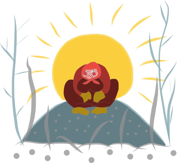 После его слов, откуда не возьмись, налетел горячий ветер. Поднял песчаную бурю. Все вокруг потемнело. Закрылось солнце. Засыпал песок всех, кто сидел на раскаленной земле. Вырос на этом месте огромный бархан. Сверху на него села страшная, жирная, с длинными сальными волосами, толстая баба Жара. Сидит и смеется: