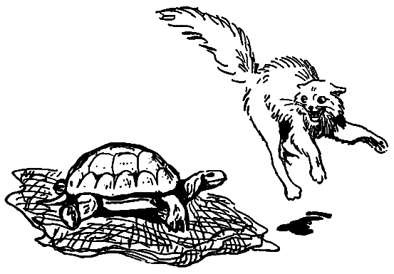 И тут его увидел контролёр. Он показал на него пальцем и потребовал у хозяйки денег. Это обидело Пушка. А шум, поднявшийся в вагоне, навёл на него ужас. И лишь глубокое презрение к контролёру, какое он вдруг ощутил в себе, придало ему храбрости и заставило остаться на месте. Пушок только немного попятился назад, выгнул спину, поднял шерсть и сказал контролёру: