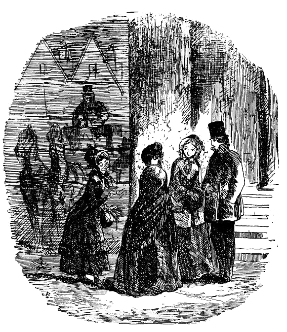 Когда мы дошли до колоннады, мистер Кендж вспомнил, что ему нужно на минуту вернуться за какой-то справкой, и оставил нас одних в тумане возле кареты лорд-канцлера, у которой стояли ожидавшие его слуги.