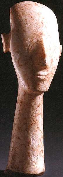 Небольшая мраморная фигурка отличается упрощенной трактовкой головы: волосы не прорезаны, нет глаз и надбровных дуг, выделены рот, нос и уши. Символическое значение вытянутой, длинной шеи до сих пор не выяснено, в более поздние эпохи она обозначала любопытство, внимательность и наблюдательность.