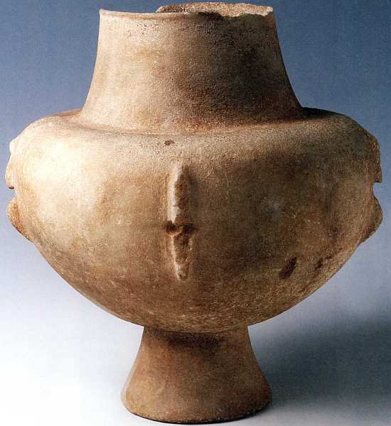 Обычно сосуд сферической или цилиндрической форм снабжался крышкой. Скорее всего, его использовали в чисто утилитарных целях: как шкатулку для хранения украшений и других мелких предметов. Отверстия на крышке и теле изделия говорят о том, что его крепили на кожаные ремни для переноски или подвешивания. Обращает на себя внимание орнамент на поверхности сосуда: она вся испещрена повторяющимися линиями. Создается впечатление, будто неизвестные мастера специально имитировали фактуру некоего природного материала, древесины или морской раковины. Также существует мнение, что эта глиняная емкость была сделана по аналогии с распространенными ящичками из дерева.