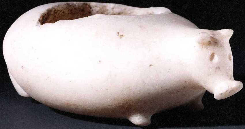 Интересно, что на данный момент археологи и искусствоведы знают только несколько таких зооморфных сосудов древнего периода: в виде овцы, свиньи или ежа, а также двухголовой птицы. Позже стали появляться чаши с изображением медведя, различных птиц, быков и змей.