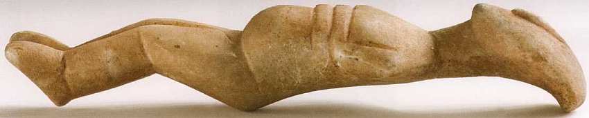Фигурки данного типа (представленная в том числе) очень примитивные: в них нет почти никаких четко выделенных черт лица и частей тела. Обычно их делали из мрамора или морских раковин.
