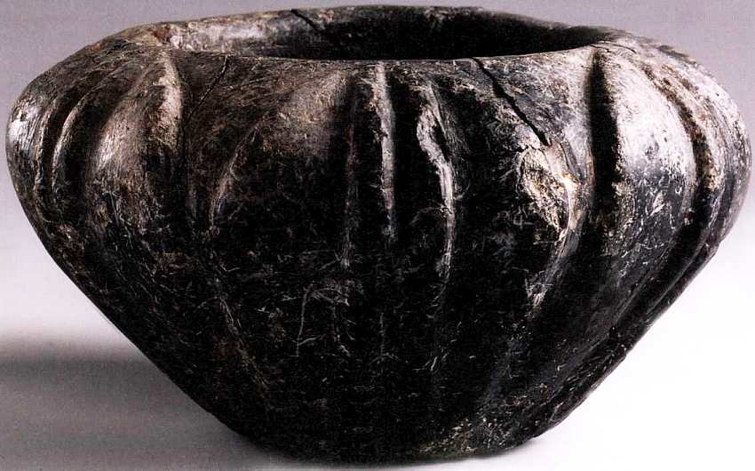 Емкость выполнена из серпентина минерала, который имеет сложную пеструю окраску, похожую на кожу змеи. Эту вазу назвали «цветочной» из-за того, что она сделана наподобие бутона. Такие сосуды изготавливали изначально в качестве погребального инвентаря, но в рассматриваемый период, когда минойские народности уже начали строить дворцы и святилища, их стали использовать в ритуальных целях. Считается, что основные образы, которые использовало местное население, пришли из Египта. Археологи находят большое количество древнеегипетских предметов по всей территории Крита. Водное сообщение между этим островом и Египтом было особенно интенсивным в период египетского Нового царства (XVIXV века до н. э). Именно тогда стали чрезвычайно популярны сосуды в виде бутонов. В них обычно хранили благовония. Распространение культа ароматических масел на Крите, по мнению ученых, свидетельствует о развитии государственности и начале формирования более утонченной культуры. Прогресс всегда связывается с жестким расслоением общества на избранную власть, к которой обращена упомянутая культура, и многочисленных представителей обслуги.