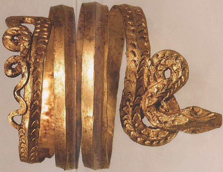 Фигурные, искусное украшенные спиралевидные браслеты и кольца частая находка археологов. Образ змеи (символ мудрости, круговорота жизни, исцеления) традиционен как для древних культур Малой Азии и Египта, так и для древнегреческой культуры.