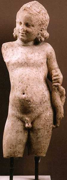 Эта прекрасная статуя изображает мальчика, который держит в руке зайца. Скульптура характерна для позднего искусства Греции, когда мастера добились вершин идеализации и типизации человека. Техника достигла такой виртуозности, что ваятели стали создавать очень манерные образы. Считается, что первоначально персонажем подобного типа статуй был Аполлон, прекрасный олимпийский бог, чьи функции в древнегреческой мифологии поражают многообразием. Он следил за порядком в мире и особенно в природе, охранял стада, покровительствовал искусствам, карал за ослушание воли своего отца Зевса. Изображение его с дикими животными призвано символизировать слитость с природой, гармонию с окружающим миром. Позже этот образ юноши с добычей в руках перешел в европейское искусство уже без связи с Аполлоном. Вплоть до XIX века в академиях художеств по всему миру скульпторы выполняли статуи на данный классический сюжет.