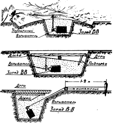 Некоторые из способов заложения фугасов показаны на рисунке 6.