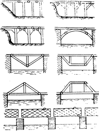Рис. 13. Схема подрывания мостов. Кружочками показаны места расположения зарядов.