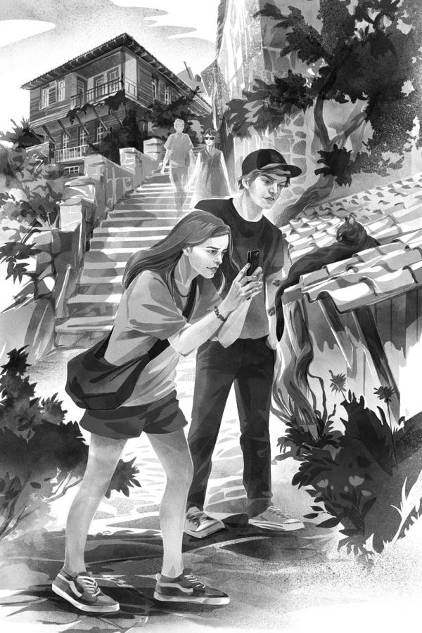 между ними, а там набрели на целую сеть узеньких каменных лесенок. Они вели вниз, к шумным бухточкам, и на лесенках теснились крохотные столики лучшие из них, позволявшие любоваться морем и прибрежными скалами, были заняты туристами. Официанты с подносами выныривали из потайных дверей и, балансируя на кромке ступеней, разносили еду. Мы договорились поужинать тут, и тётя Вика заказала нам два столика на вечер.