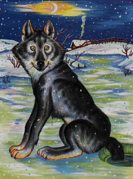 Надоело волку сидеть. Хочет он вытянуть хвост из проруби, а лиса говорит: