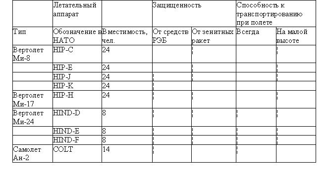 Таблица 13. Авиационные средства для доставки десанта
