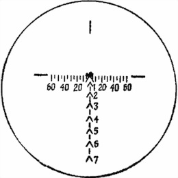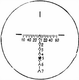 Рис. 49. Наводка гранатомета в цель (расстояние до пулемета 500 м, боковая поправка отсутствует):