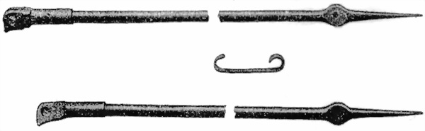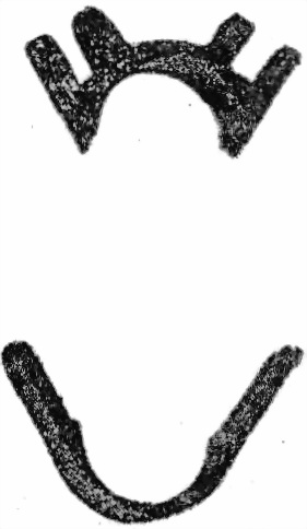 Если нажать на правую головку (выдающуюся), то зубецъ лѣвой головки стержня выйдетъ изъ нарѣзки рамки и освободитъ хомутикъ, который можно тогда передвигать вдоль рамки.