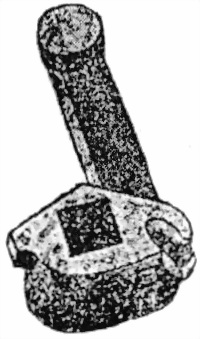 56. Стержень возвратной пружины (фиг. 48) служитъ для сжиманiя возвратной пружины; онъ имѣетъ головку съ цапфами (плечиками) для соединенiя съ возвратнымъ рычагомъ, вѣнчикъ для упора верхняго конца пружины; стебель для надѣванiя пружины и на заднемъ концѣ скосъ для прохода въ дыру упора.