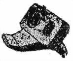 55. Курокъ (фиг. 47) назначенъ для производства удара по ударнику для воспламененiя капсюля патрона, Онъ имѣетъ круглое отверстiе для надѣванiя на боевую ось; головку , которая бьетъ по ладыжкѣ ствольной коробки и которая, скользя по полукруглому скосу хвостовой планки, взводитъ курокъ на боевой взводъ. Сзади курокъ имѣетъ проушины для соединенiя курка со стержнемъ боевой пружины. Снизу курокъ имѣетъ выступъ боевой взводъ.