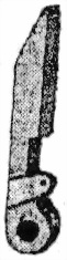 67. Предохранительный взводъ (фиг. 57) служитъ для устраненiя возможности случайно спустить курокъ съ боевого взвода. Онъ имѣетъ стебель и рукоятку. На стеблѣ имѣется выступъ, который, будучи повернутъ кверху, упирается въ выступъ шептала и препятствуетъ послѣднему опуститься внизъ и тѣмъ освободить курокъ съ боевого взвода.