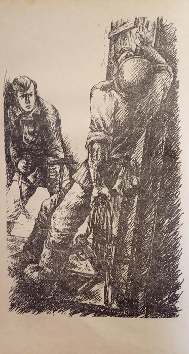 Стало совсем светло, когда пришли в расположение отряда, находившегося при штабе соединения. Молодые хлопцы с завистью глядели на военную форму Володи. Слышался шепот: «Десантник...» А когда он спросил, где можно немного отдохнуть, стали наперебой приглашать в свои шалаши. Но Володя решил вздремнуть на свежем воздухе, лег на траву, расстегнул воротник гимнастерки, положил рядом автомат и вскоре уснул.
