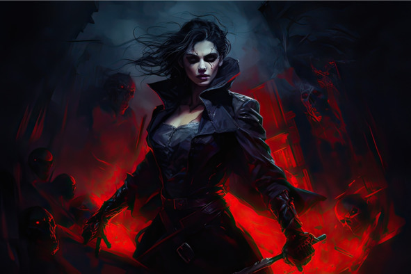 В это время они услышали громкий треск, и одна из стен начала трещать. Из-за нее показалась темная тень. Она медленно расползалась, принимая форму высокого, темного существа с красными глазами, сверкающими в полумраке.